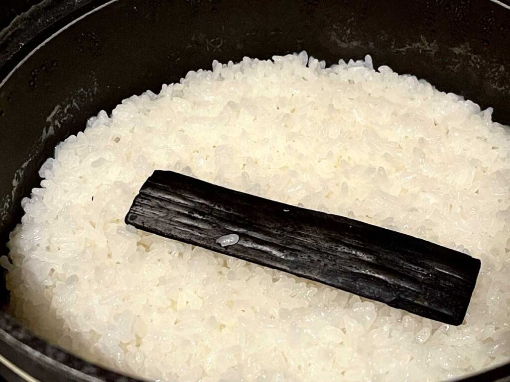 ・洗ったお米に 竹炭を1本入れます